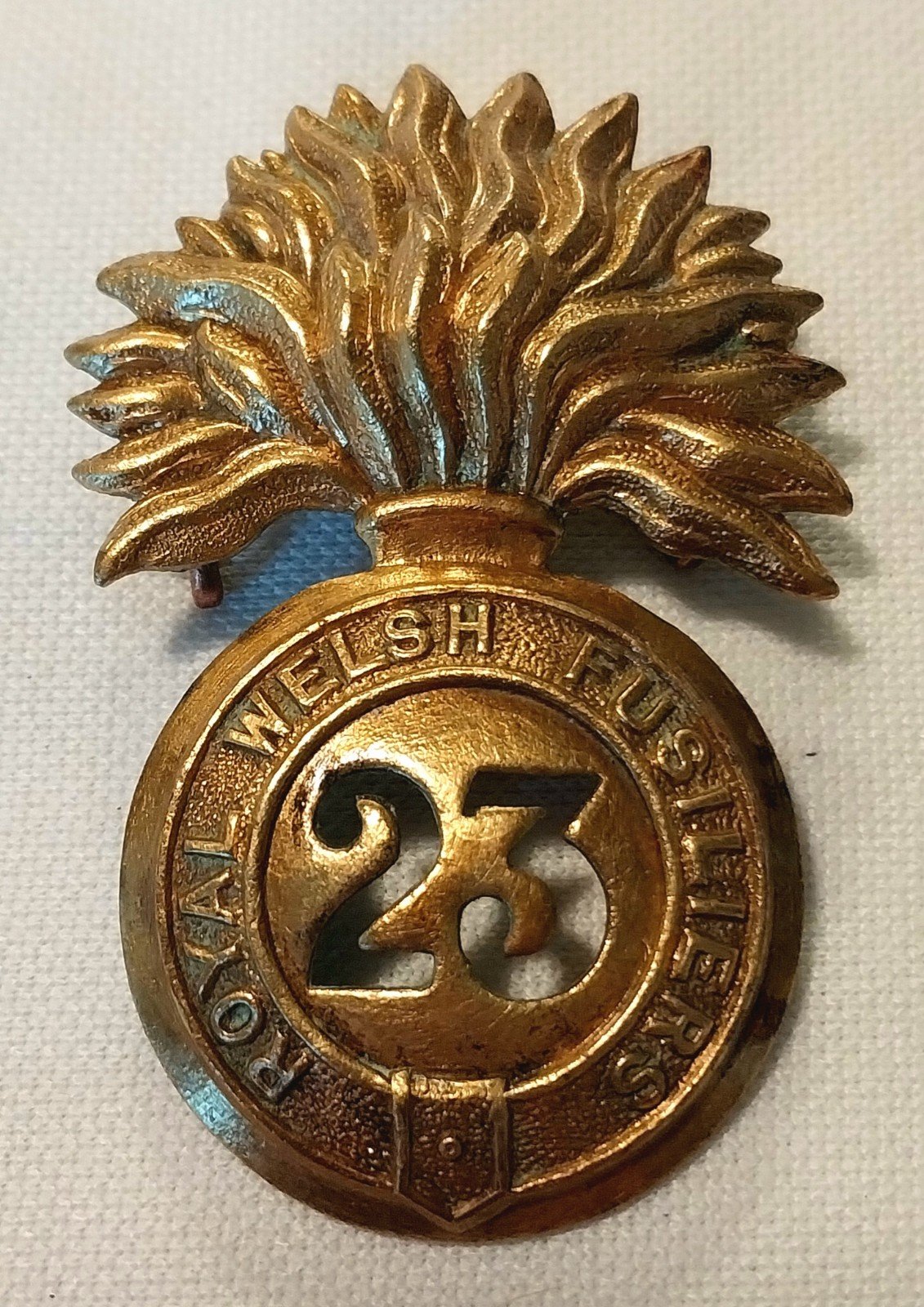Vintage British Military Victorian Royal Welsh Fusiliers Cap Glengarry Copper Badge 23rd Regiment of Foot