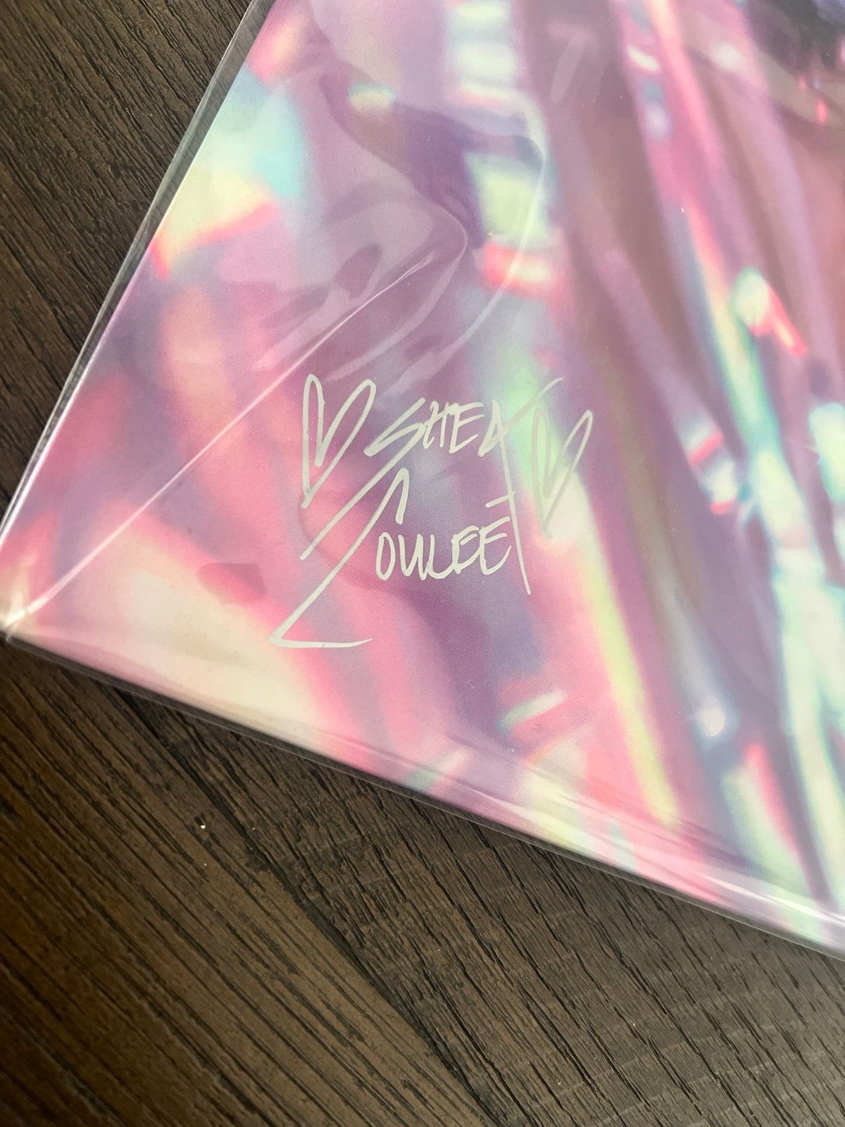 Second pic is mock up from website. Reminder of pics are the actual copy you will receive. Beautiful signature with 2 hearts