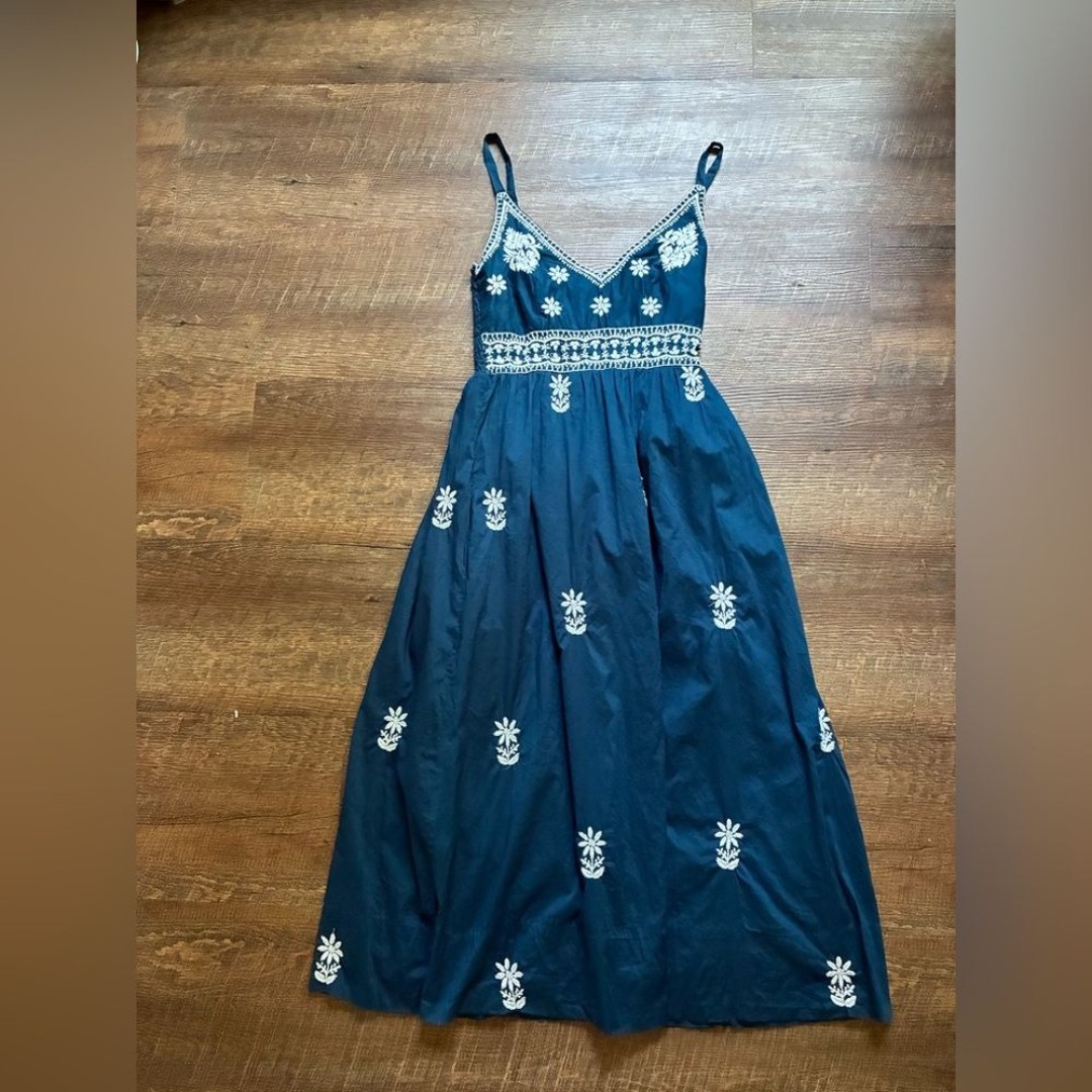 This hand embroidered sundress by Gretchen Scott is called Fiesta Time. Its gently preloved. Excellent condition. The only flaw I see is the tag on the inside back is hanging loose.
