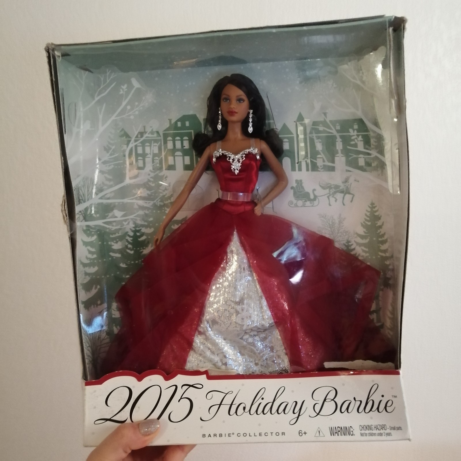 -2015 holiday barbie AA, has some writing on box and box damage