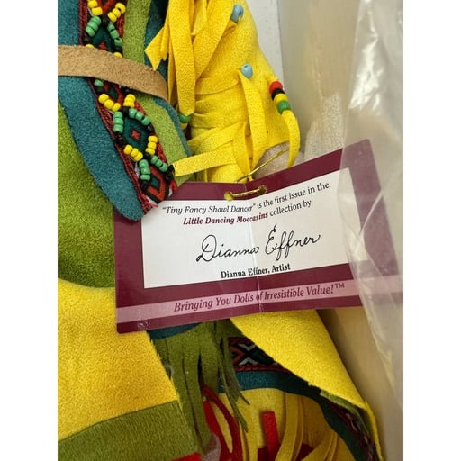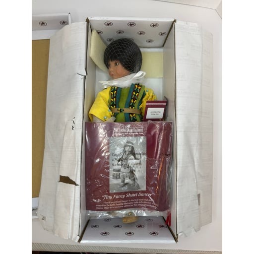 "Petite Fancy Shawl Dancer". From the cherished Little Dancing Moccasins children's doll collection by artist, Dianna Effner, exclusively crafted for The Ashton-Drake Galleries. She is from a smoke free home. She comes in the original box. Rare in pristine condition.