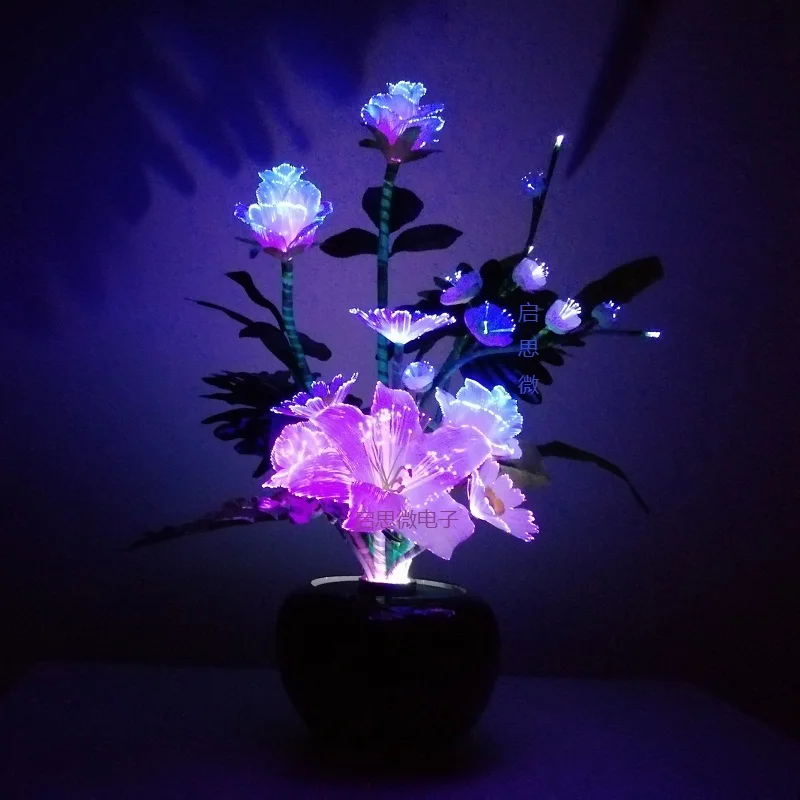 Latest researched and invented products, made by flowerpot, fiber optic, LED and spun silk, finished
