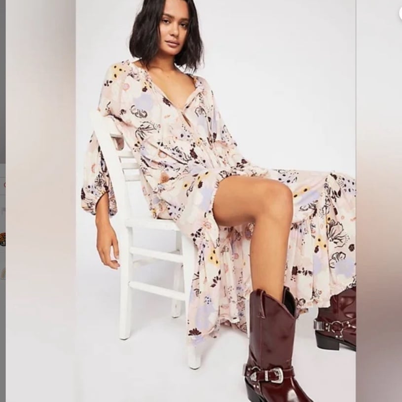 -ivory combo, with all over florals in pastel pinks, creams & purples.