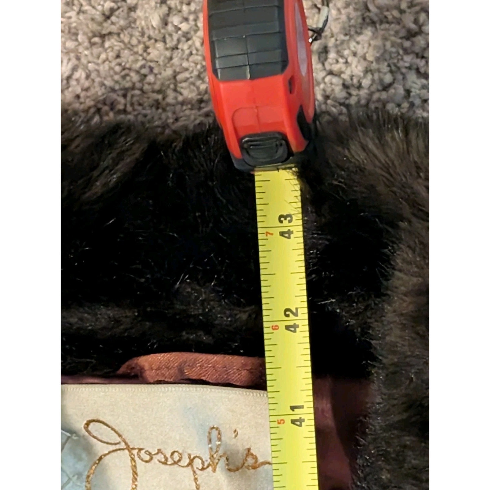 This stunning glamorous full length black Tissavel Genuine Simulation Fur Coat is in next to perfect condition. The one and only flaw is on the back side of the belt tie. Slight peeling which will not be seen once tied. It is a size Small but could also fit as a Medium. Measurements listed below and shown in pictures.