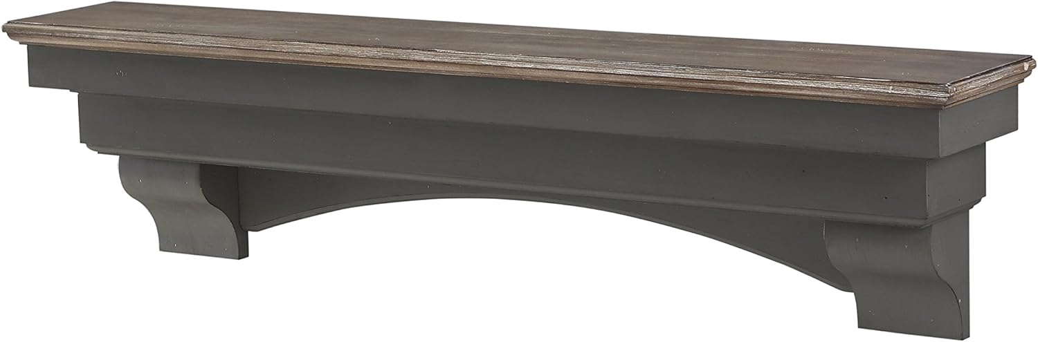 From the Manufacturer It’s the first piece of furniture in any home. There's nothing as warm and welcoming as a crackling fire in an open fireplace. The dancing flames can lift your spirits and melt away the most stressful day in a matter of minutes. But to truly be part of the home, a fireplace must warm our hearts even when there is no fire in the grate. Pearl does not treat the mantel as trim or molding but as a beautiful piece of furniture that is the focal point of the entire room, the emotional core. It represents roots, heritage and tradition. Furniture is arranged around it, precious treasures are displayed on it, and it provides balance and stability to the entire room. Pearl Mantels features fine furniture quality, stunning details and classic designs that will enhance any decor. The Auburn shelf is made to please. Three design choices! The shelf comes to you with three separate design components consisting of the shelf, a pair of corbels and the arch. You will have the option of installing just the shelf, the shelf and the corbels together or the combination of the shelf, corbels and arch. Whether your design taste is clean, classic, traditional… the Auburn has your style covered. Hand crafted from Asian hardwoods and veneers this piece arrives in a beautiful distressed cherry finish. Mitered hanger board assembly included for easy installation. Shelf Length: 72" Shelf Depth: 10" Bottom Base Depth: 6" Overall Height with Corbels: 15" Height Corbels: 6 3/4" Width Corbels: 6" Width between Corbels: 52 1/2" Radius: 99.712 Weight 65 pounds. Look for the pearl inlay that graces the right hand side of the shelf as proof that you have received an authentic Pearl Mantel. Also available unfinished, paint and stain grade.