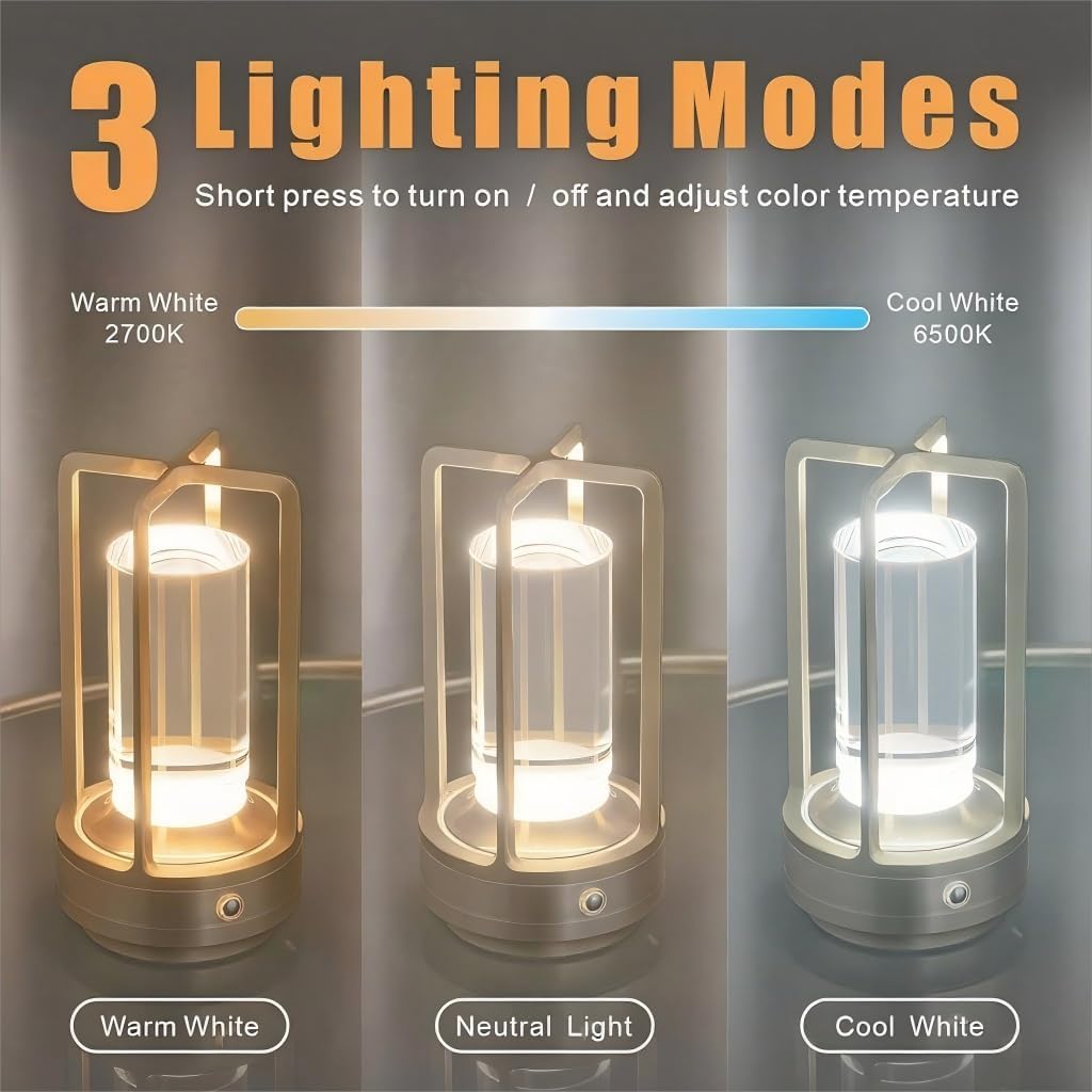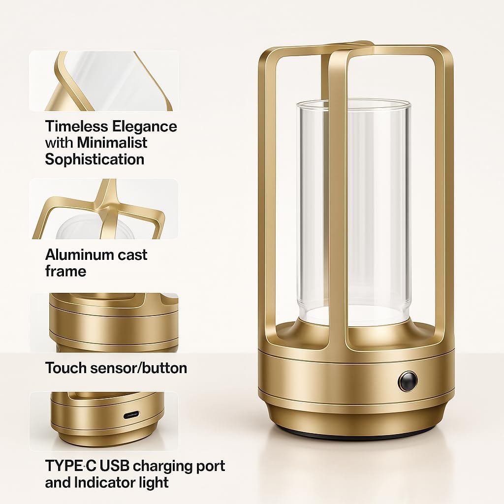 Illuminate your space with elegance using the Fluxora Portable Metal Table Lamp, a versatile lighting solution perfect for both indoor and outdoor settings. This sophisticated gold-finished lamp features a sleek cylindrical design with a clear glass shade, creating a warm and inviting ambiance. The cordless, rechargeable LED technology offers convenience and mobility, while the 3-color temperature options and infinite dimming capability let you customize the perfect lighting atmosphere. Its compact size makes it ideal for restaurants, bedrooms, bars, coffee shops, or camping adventures. The durable metal construction ensures longevity, while the handle allows for easy transport. Whether you're creating a cozy reading nook or setting the mood for an outdoor dinner, this battery-powered lamp combines style with functionality. The modern design complements various decor styles, making it a practical and attractive addition to any space.