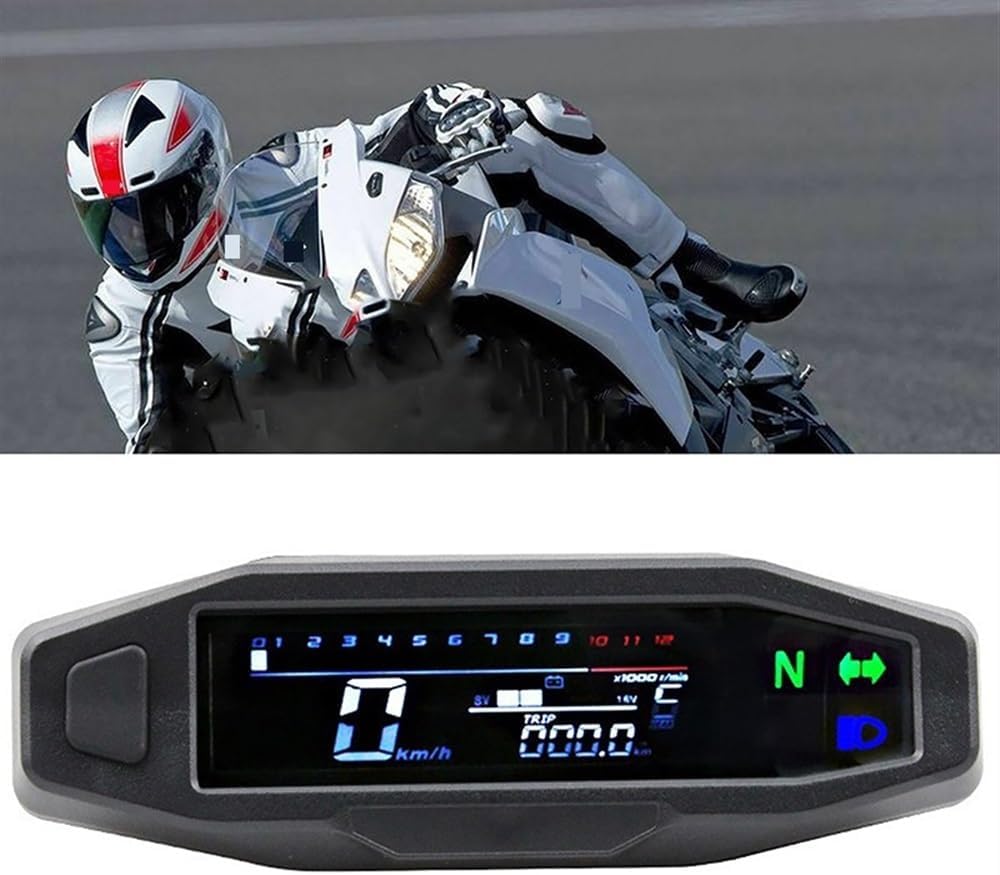 Before purchasing, please make sure the product size is suitable for your motorcycle vehicleMotorcycle Tachometer Meter Universal Digital Odometer Counter Motorbike Tachometer Fuel MeterFeature:This motorcycle Tachometer and has multiple functions to make your driving safer and more convenient.Features:You can adjust the speed speed and oil volume by pressing the button5 square grids of the oil gauge show the oil quantity1-6 gear digital display.With white backlight whether you are driving at night or during the day the mileage on the dial can be clearly displayed.Features include: Tachometer odometer tachometer fuel gauge display is very clear wide and soft viewing angleSpecification:Colour: BlackPlastic + MetalScreen Size: 103*25mm 4.1*1.0inchpacking list:1 x sensor wire2 x dedicated magnets