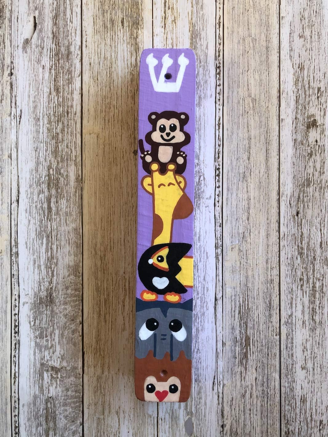 A mezuzah makes a great gift for a new baby, bris, baby naming, housewarming, shower, bar/bat mitzvah, wedding or birthday! ► I hand paint all details with acrylics and seal it with varnish for protection. ► It is made out of a lightweight wood and measures 6” in height. ► The space for the scroll (not included) is 4 inches. **NOTE: The mezuzah can be installed with screws through the top and bottom holes or it can be hung with double sided tape (not included).** As always, please let me know if you have any questions!