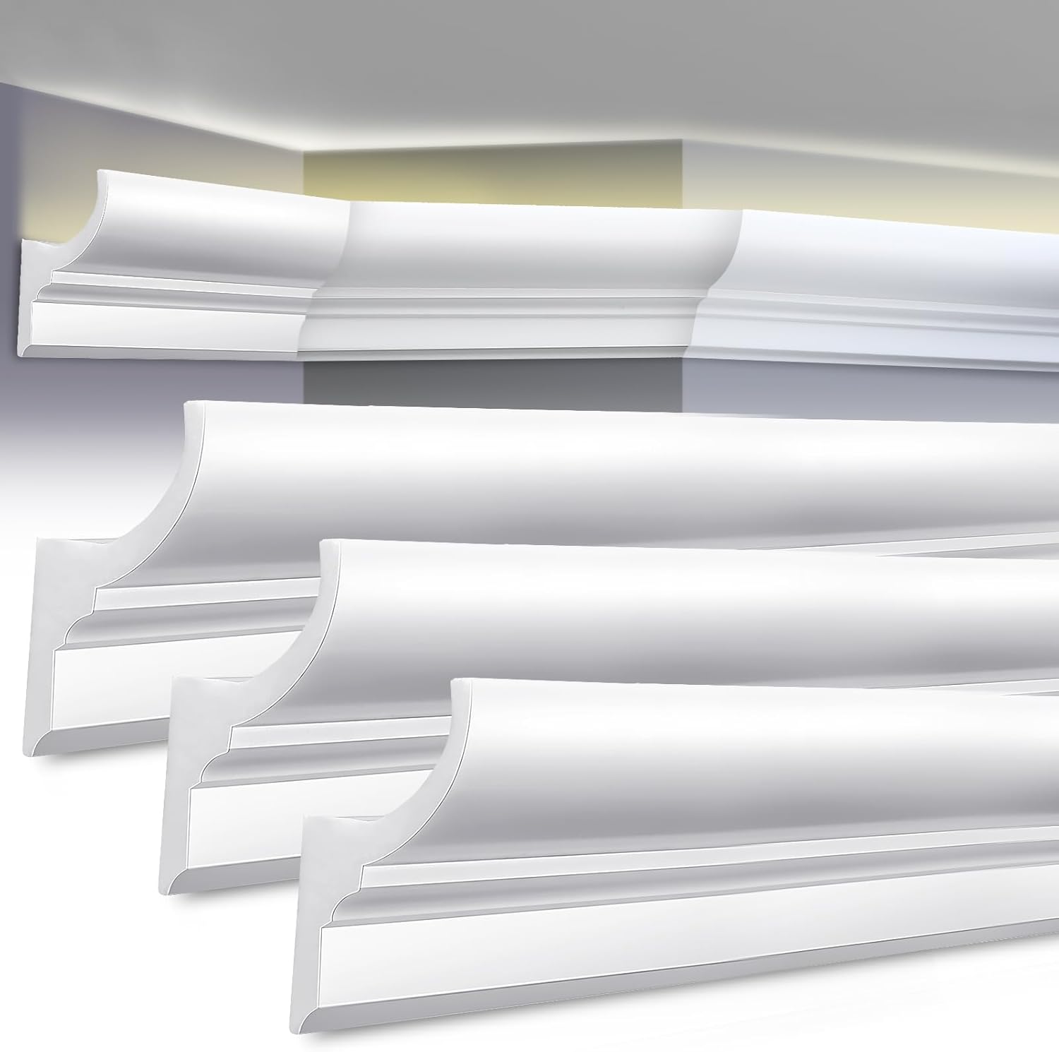 Features: Durable and low-maintenance: Made from quality polystyrene, this crown moulding is resistant to warping, cracking, and moisture, ensuring long-term durability. Its smooth surface is easy to clean and maintain, making it a practical choice for any space. Customizable lighting effects: Pair the crown moulding with dimmable or color-changing LED lights to create dynamic lighting effects. Whether you want a cozy warm glow or vibrant accent lighting, this product offers endless possibilities to match your mood or occasion. Specifications: Material: polystyrene Color: white Size: approx. 47.24 inch/ 120 cm in length, totaling 35.4 ft/ 10.8 m in length Package includes: 9 x Ceiling crown molding Notes: Manual measurement, please allow slight errors on size. The color may exist a slight difference due to different screen displays.
