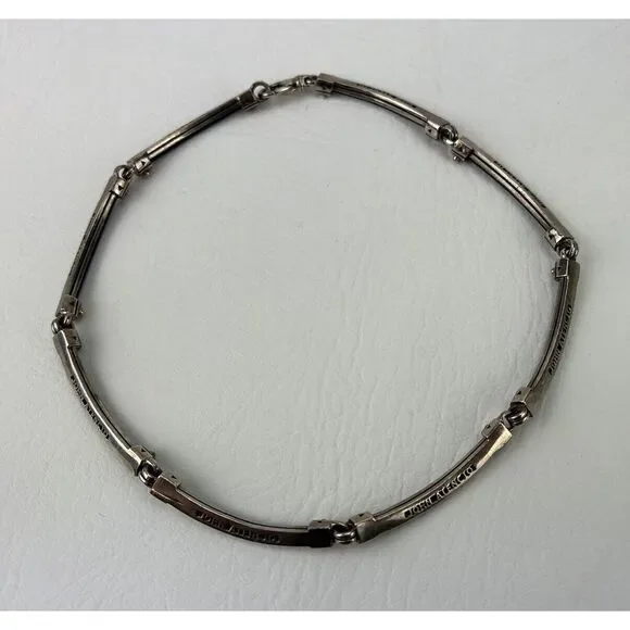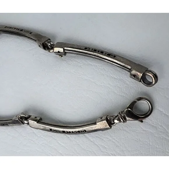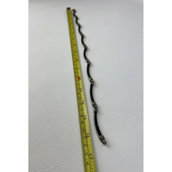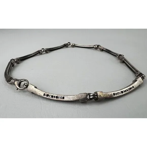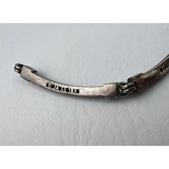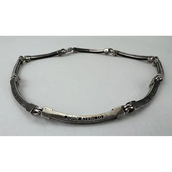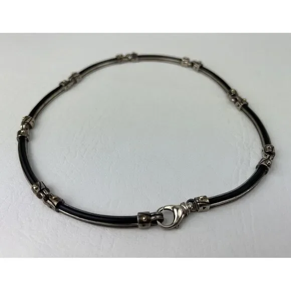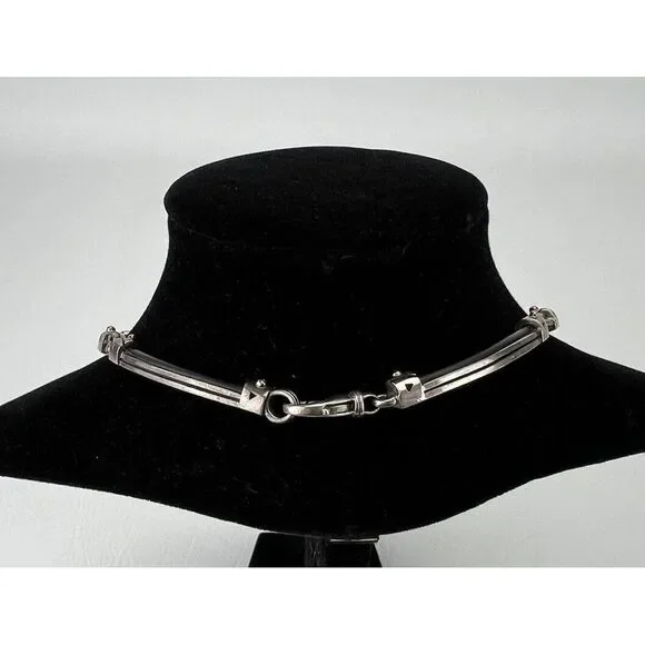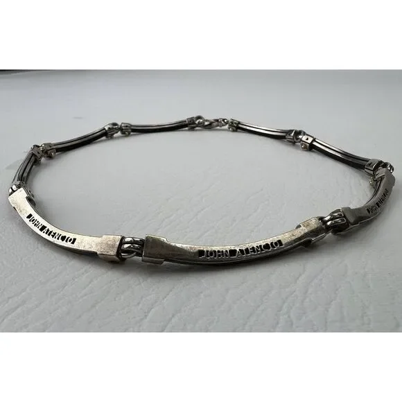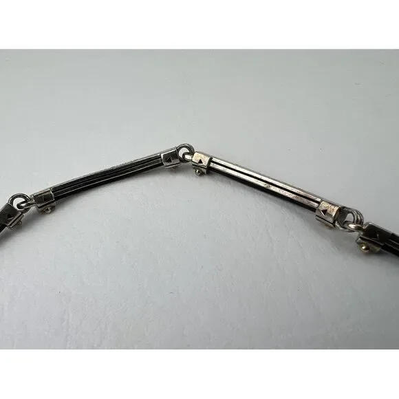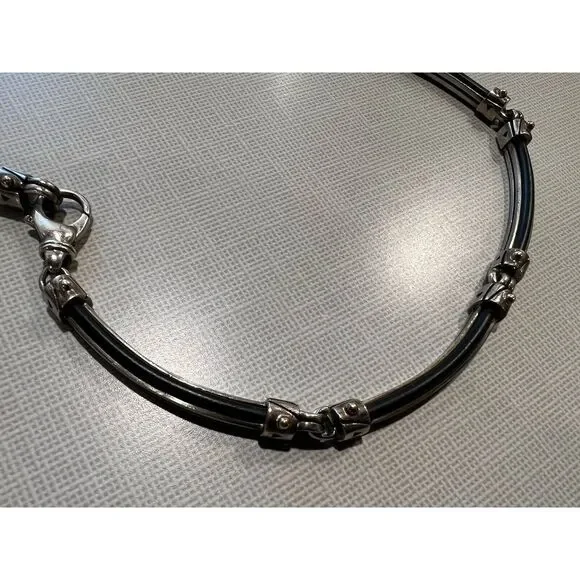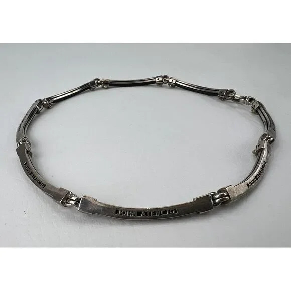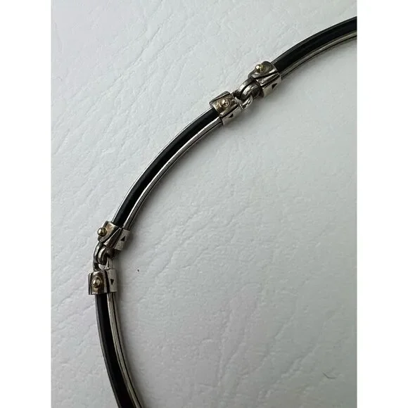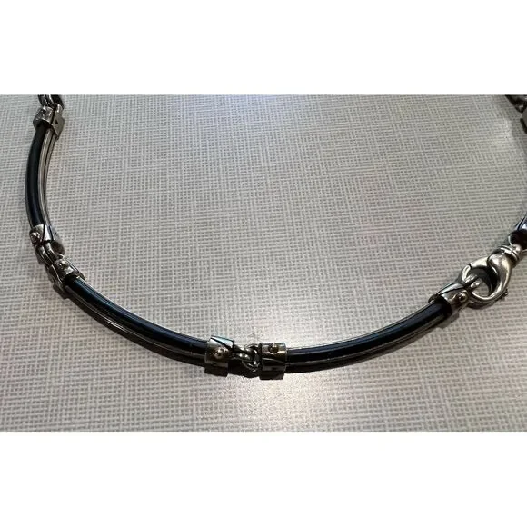 Vintage John Atencio Sterling Silver 18k JA SS NecklaceItem is "Preowned ". The black part on outside of necklace feels like leather but not sure. Tested for Silver. Shows some wear from use and age but overall good condition and still has plenty of life left. Rare hard to find style from this maker. Just over 16.5" in length and total weight of necklace is about 54 grams. Check pictures thoroughly. From a smoke free environment.