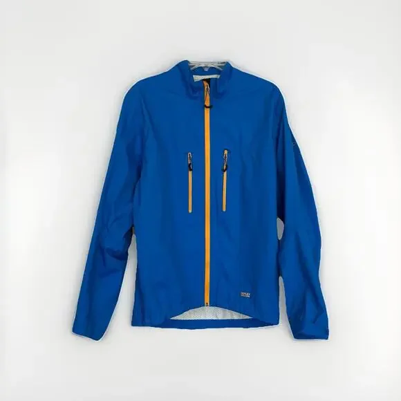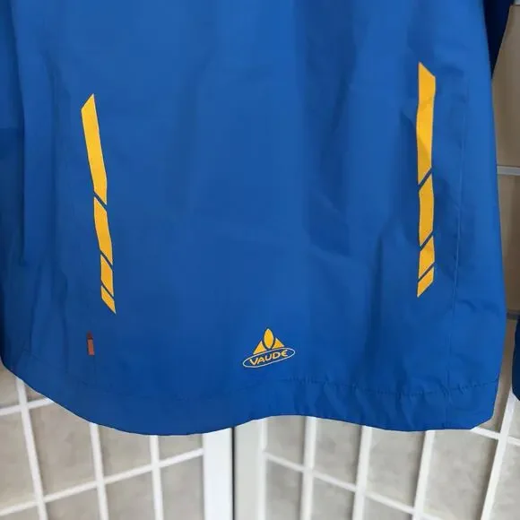 Vaude Tiak Jacket Water Resistant Windbreaker Size S Outdoor Hiking BikingCondition. Perfect. Never worn.The well-known German company Vaude has released a new cycling jacket, Tiak Jacket, made of wind and water-repellent materials. Recycled synthetic polyamide with an external polyurethane coating is chosen as the main material. The back of the jacket is low-cut, all zips are waterproof with special loops for one-handed unzipping/fastening. There are only two medium-sized zippered chest pockets. The cuffs of the sleeves are fastened with hook and loop, and the sleeves in the armpit area have a zippered ventilation holeFeatures -Articulated sleeves2 chest pockets with water resistant zipsWater resistant front zipDrawcord at the bottom hem with one-hand adjustmentAdjustable cuffsUnderarm ventilation with water resistant zipsReflective elementsMaterial type Face: 100% Polyamide; Coating: 100% PolyurethaneApprox MeasurementsLaying flat. Chest 21”Laying flat shoulders 19”Back center collar to hem 29”Front zipper length 26”