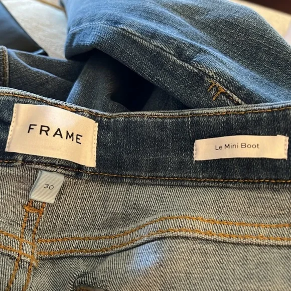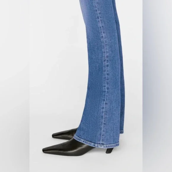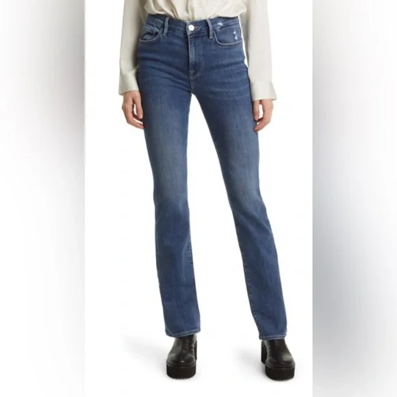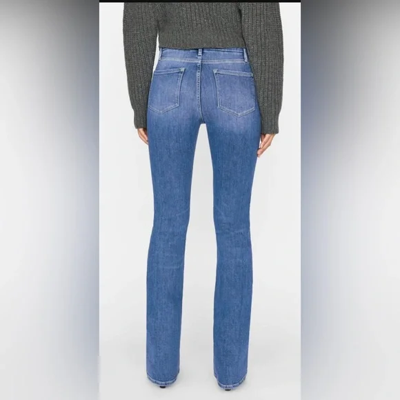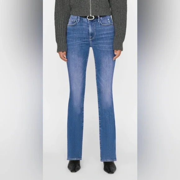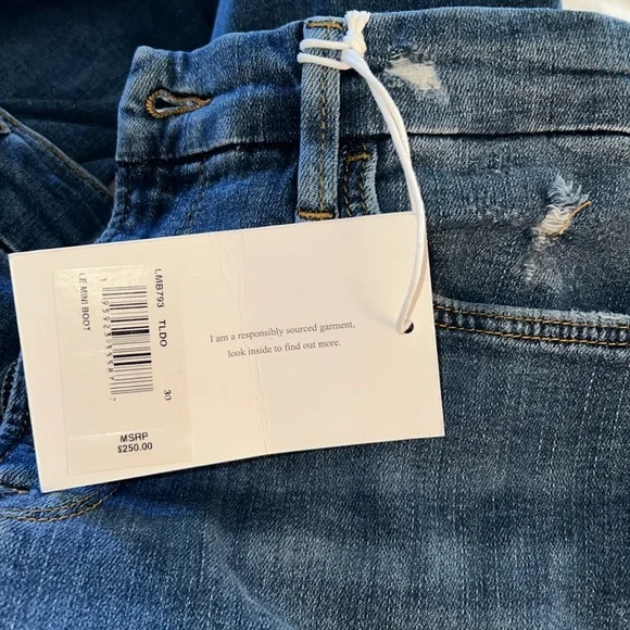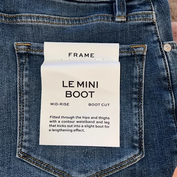 This mid-rise, boot-cut fit features a contour waistband for comfort and a close fit through the seat and thighsLe Mini Boot's kick flare starts at the knee and finishes with a clean full-length hemToldeo is a medium-blue wash cut from premium super stretch denimFeatures subtle fading at the hip crease and thighsSome distressing Mid-rise fit, super stretch denimFits true to sizeFabric 77% Cotton18.5% Modal 3.5% Elastane-Polyester1% ElastaneMachine washSmoke free / Pet free home#41