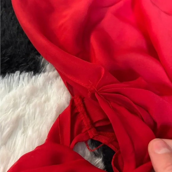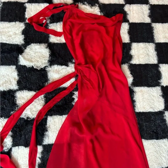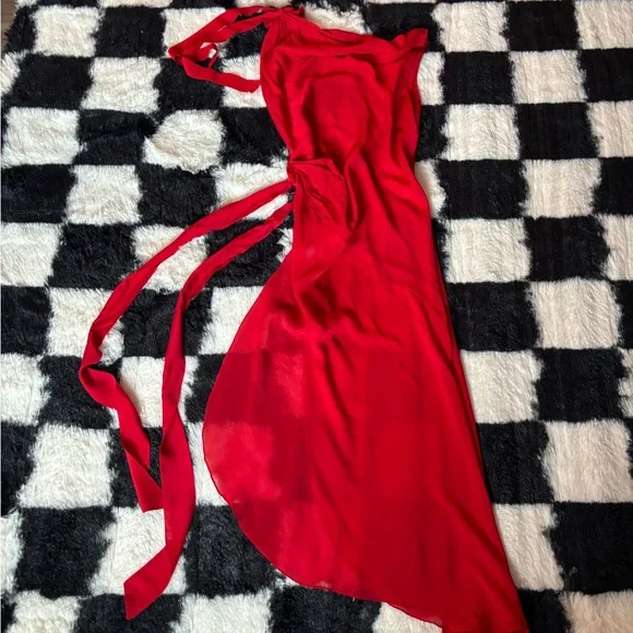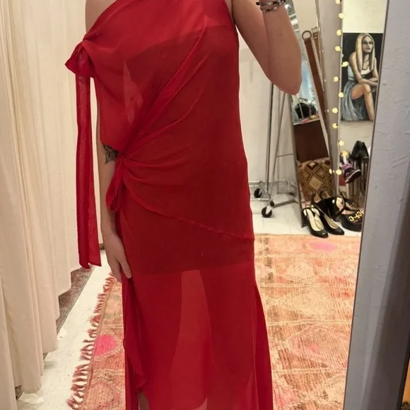 Beautiful Chiffon red dress from Dana Foley NYC. This dress is legit a dream. It can be tied many different ways. There is a tie at the shoulder and, at the waistline as well. You can adjust how tightly it will sit. I just got this dress dry cleaned so it is ready to be worn and I will pack it delicately 🫶🏻It is see through- put a black or red tube dress underneath for the most perfect look.This dress is perf for summer nights/ Valentines day/ performances/ dates. It’s such a beautiful timeless piece. I really wish I purchased the right size ( accidentally purchased a medium instead of a small)I just bought it last month so its brand new. I wore it for one event. I am selling for 100$ less. The only slight flaw is at the waist tie, there is a few threads hanging. Nothing that will affect the piece though. I pictured it in the last photo.#danafoley #danafoleynyc #nyc #chiffon #dress