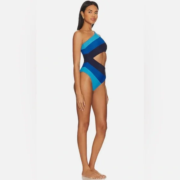 A crowd favorite, the Celine is an asymmetrical one piece swimsuit with side cutouts and moderate coverage. Chic and new, she has become one of our bestsellers. Perfect for any activity, from lounging poolside to swimming in the ocean.Moderate CoveragePoly/Spandex blendHand wash cold; lay flat to dryMade in the USANew with tags Buy more save more!!!!!Please check out my closet and follow me:-)