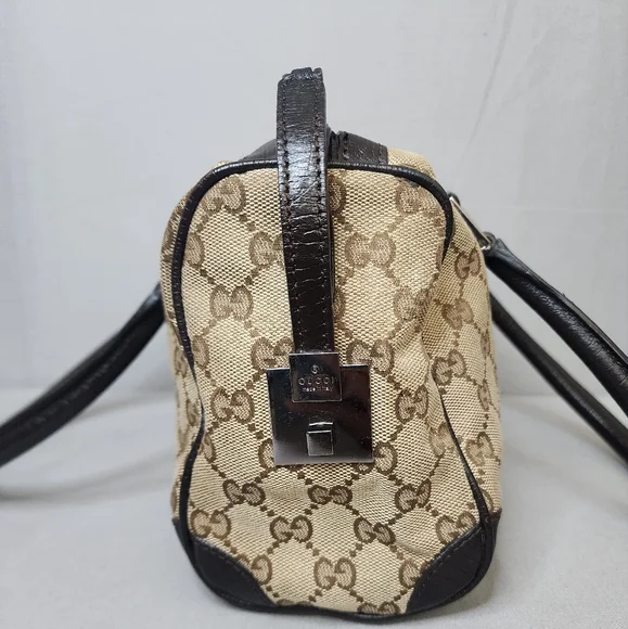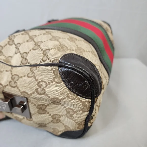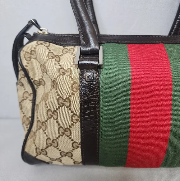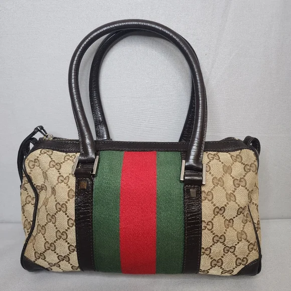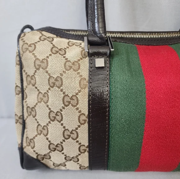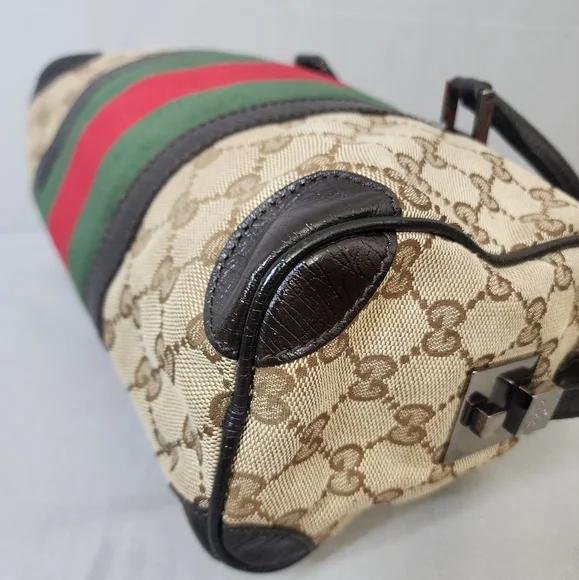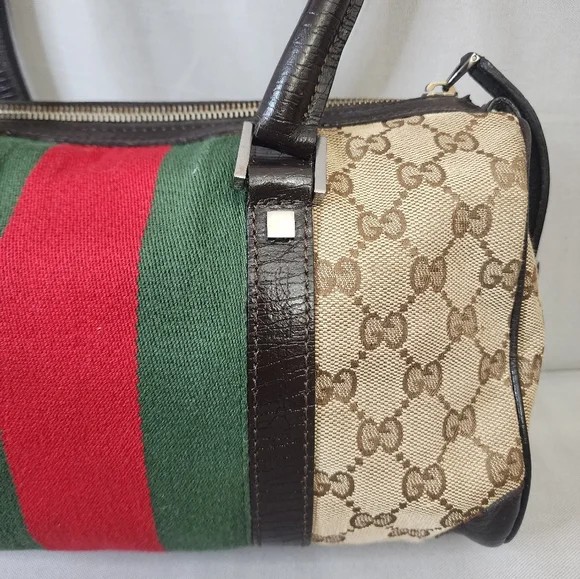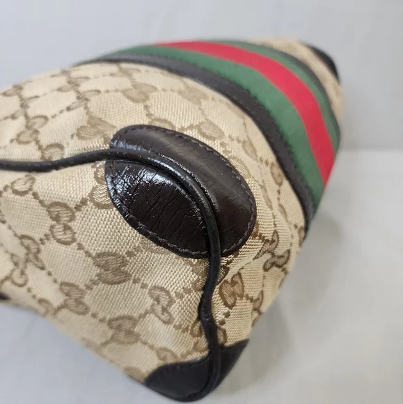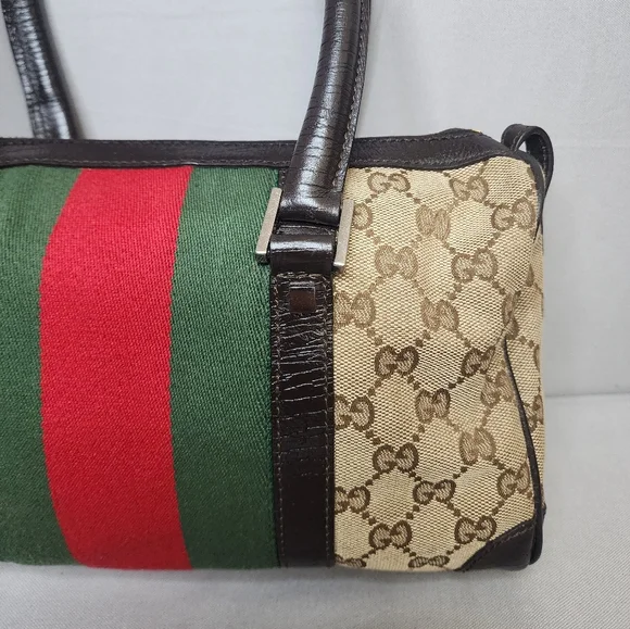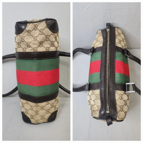 💖 PRE-LOVED 💖🌼 VINTAGE / Small size 🌼☆Exterior : canvas has no rips, tears or stains☆Interior : lining has no rips, tears or major stains☆Brown leather trim including handles has creasing and scuffing as pre-used,,no tears or cracks☆Red / Green web stripes has no tears or puffing☆Silver hardware has hairline scratches☆Open top with zip closure / push lock☆Handle drop : 6"‼️Please see pictures for all details‼️💢100% AUTHENTIC💢