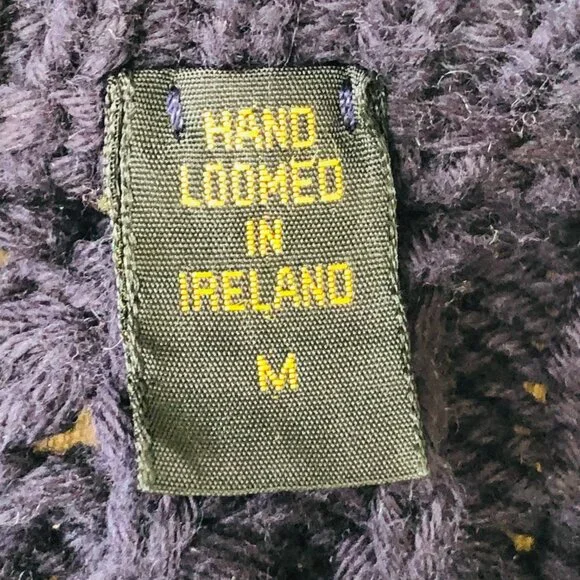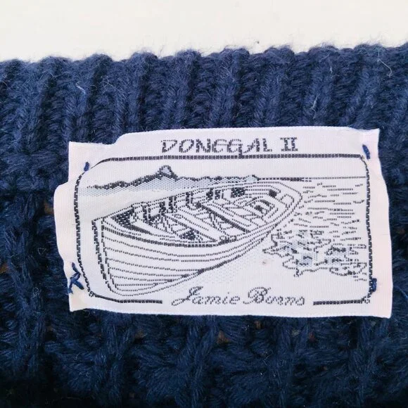 Vintage Donegall II Jamie Burns 100% cotton fisherman sweater hand loomed in Ireland. Men's size medium measures approximately 22" armpit to armpit, 26.5" neck to tail. Superior condition with no holes, tears, or stains. There is a pulled thread on one wrist, please see photos. Smoke free, pet friendly home.PLEASE NOTE! Sweater is navy blue, NOT BLACK!